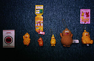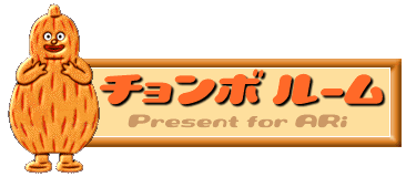 | このチョンボルームはチョンボギャルこと亜里さんの所有するチョンボ・グッズの数々です。 こんなに出回ってるとは、驚きです(^O^)。 下の1〜4の番号の付いたチョンボをクリックすると写真と説明文が変わります。 動き回ってるチョンボをクリックするとタコラに戻ります。4.0以上のブラウザで見てね! 亜里さん、どうもありがとう。 |